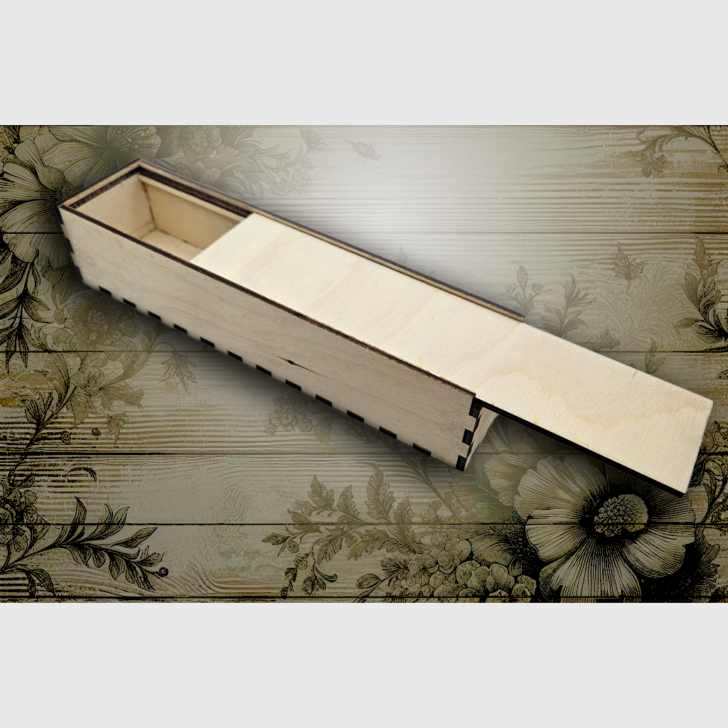 Scatola in legno con chiusura a scorrimento utilizzabile come porta penne, personalizzabile in ogni suo lato